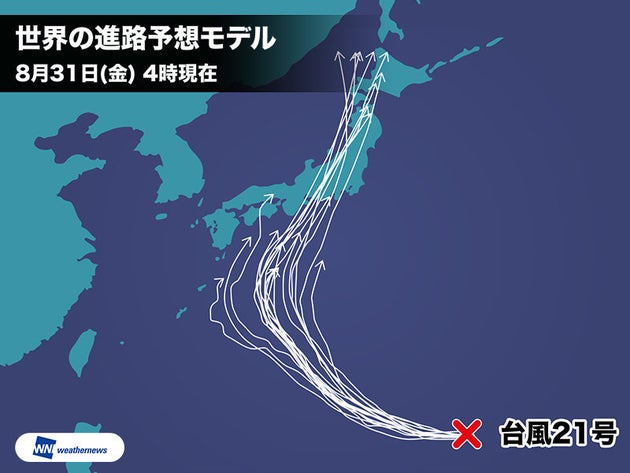 台風21号 世界の各機関予想 週末にかけ本州接近でまとまる ウェザーニュース